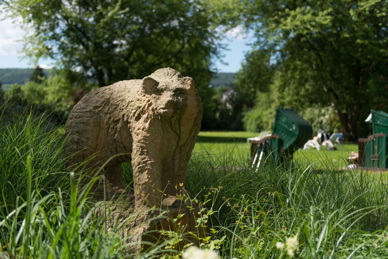 Unsere angestellte Gärtnerin hält die Grünanlagen ganzjährig in Schuss. Besonders beliebt ist bei den Gästen der malerische Bereich rund um den Teich. Im gesamten Park laden Bänke in verschieden Sitzhöhen zum Verweilen ein.