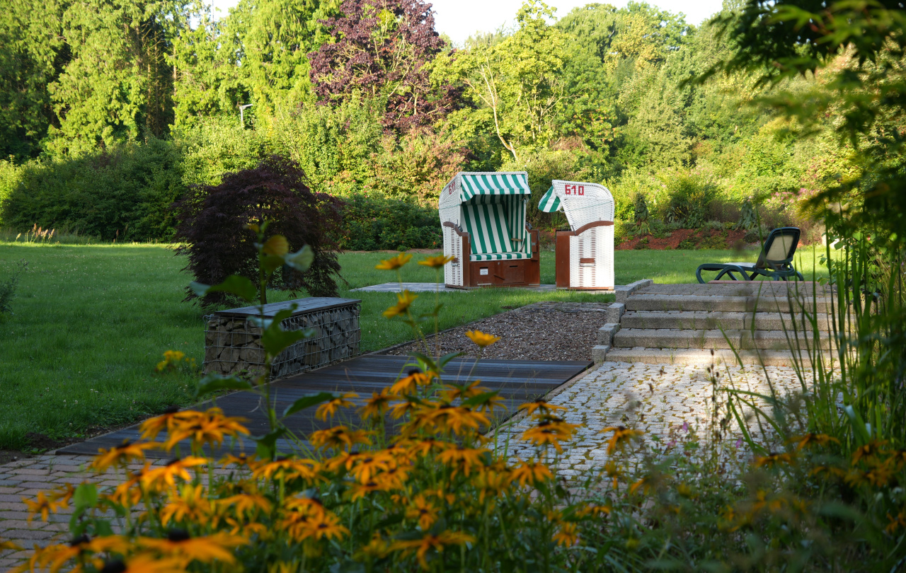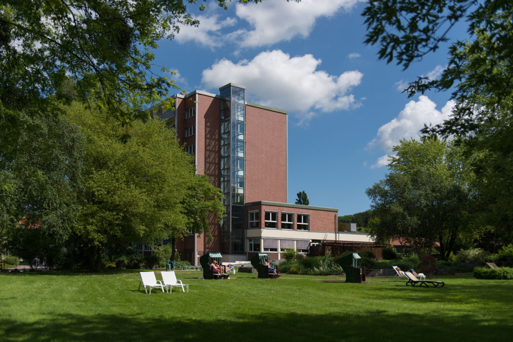 Die Bückeberg-Klinik verfügt über einen 12.000 m² großen hauseigenen Park. Hier fällt das Entspannen leicht. Sei es beim Sonnenbaden, beim Wassertreten, beim Terraintraining oder einfach beim Schlendern durch die gepflegten Grünanlagen.